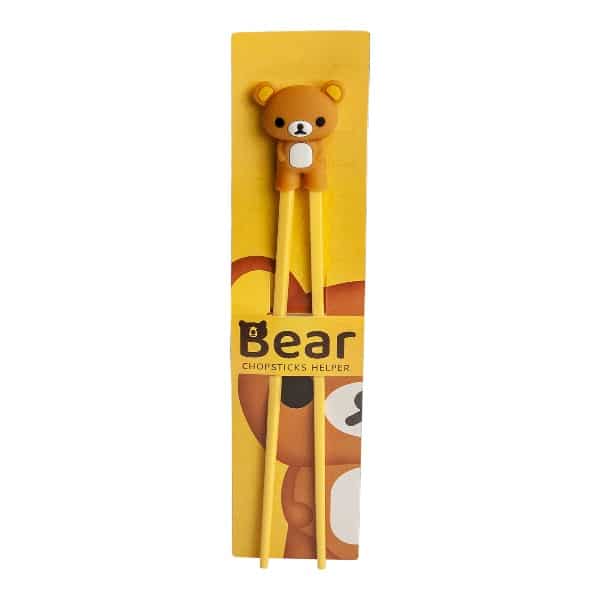 Baguette en mélamine pour débutant avec une figurine ourson afin de permettre un apprentissage à l’utilisation des baguettes.