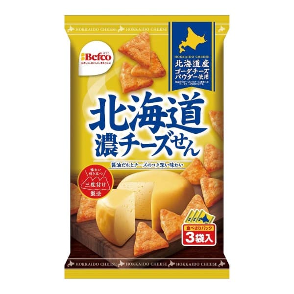 Vous trouverez avec ces crackers de riz grillés finement salé la douce saveur de fromage issu du lait réputé d’Hokkaido.